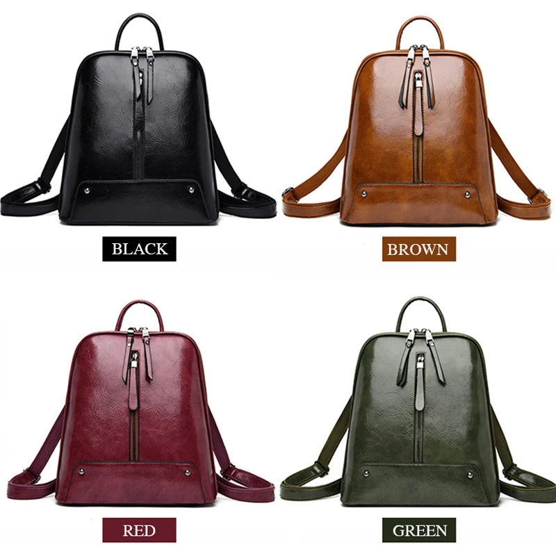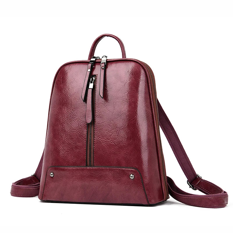 Large Capacity Women's Leather Backpack - Fashion Travel Bag