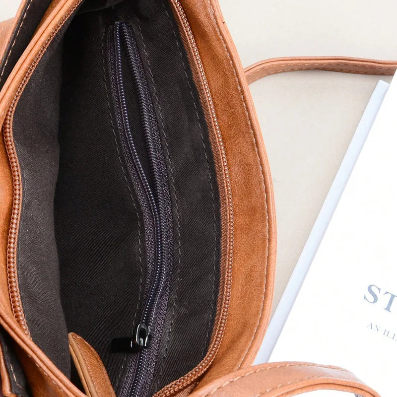 Vintage Multi-pocket Women Crossbody Bag - Soft PU Leather Shoulder Bag