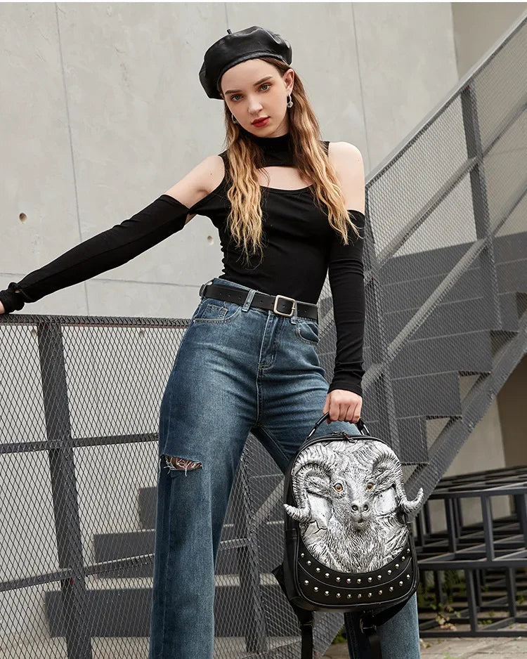 3D Goat Backpack | PU Leather Unisex Travel & School Bag