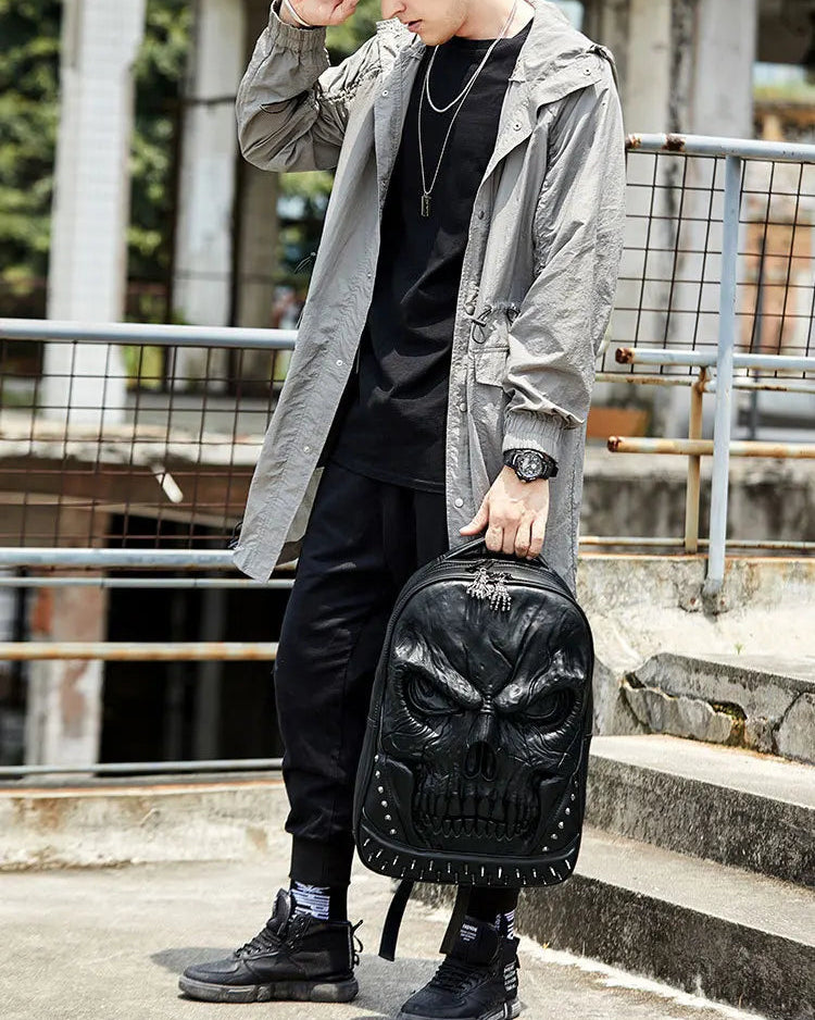 The Steampunk 3D Skull Backpack is a bold and edgy accessory for women and men of all ages, combining style and functionality. Made from premium PU leather with a durable polyester lining, it features a secure zipper closure and striking punk rivet details. Its large capacity design comfortably fits laptops, books, and travel essentials, making it perfect for school, college, work, or travel. The unique skull design adds a gothic, Halloween-ready personality, while the unisex style ensures versatility. This backpack blends durability, comfort, and distinctive fashion, making it ideal for students, travelers, and anyone seeking a standout steampunk backpack.