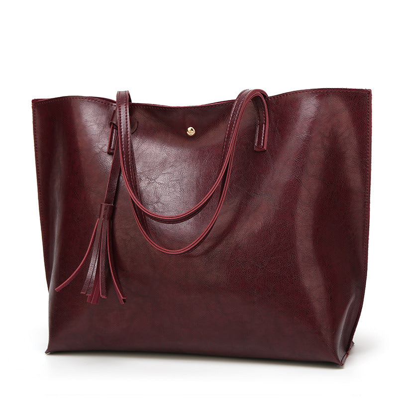 Women’s Oil Wax Leather Shoulder Bag – Large Tote Handbag